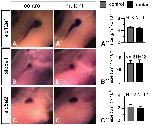 Expression of P328L329del transcripts upon crossing the HSPCre13 with the 328del4 strain. Quantitative RT-PCR analysis of a crossing between a heterozygous HSPCre13 male and a heterozygous P328L329 female. The F1 offspring were heat-shocked for two hours at 34 at early gastrula (stage 11). Double transgenic larvae were identified by the presence of red and blue fluorescence at stage 40 (see Fig. S1). mRNA levels of P328L329del were analyzed by quantitative RT-PCR using specific primers (see Material and Methods) and the results were normalized to odc expression levels. The single bars represent the mean of N larvae +/− standard deviation. n.d. = no detection of P328L329del transcripts. E = edema M = malformations.