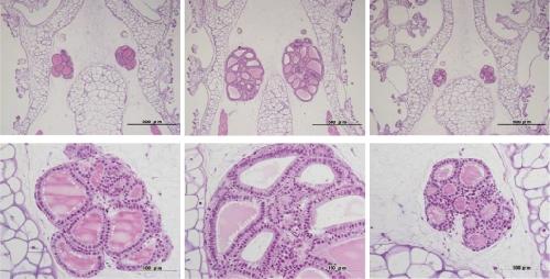 Thyroid histopathology assessments for the amphibian metamorphosis assay to detect thyroid-active substances.