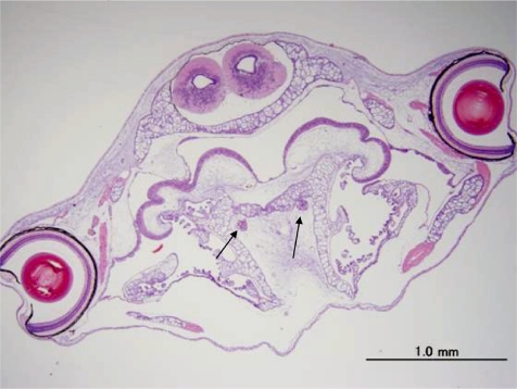 Fig. 1. Arrows indicate thyroid glands in Stage 51.