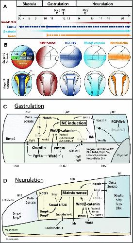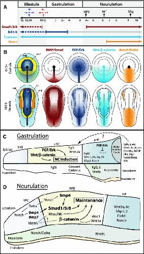 Steventon, Differential requirements of BMP and Wnt signalling during gastrulation and neurulation define two steps in neural crest induction. 2009, Pubmed , Xenbase