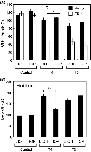 Figure 3: D2 activity is required for the death of thyroid hormone receptor (TRα)-transfected tail muscle cells induced by a low level of thyroid hormone (TH). (A) The empty vector or TRα expression construct was co-injected with the GFP gene (25 ng each) into the third tail myomere, and the GFP and DNTRα constructs (25 ng each) were injected into the seventh myomere as in Fig. 2A. One week after injection, the tadpoles were immersed in the rearing water containing 10 μm iopanoic acid (IOP) or ethanol (EtOH) with or without 0.6 nm TH. GFP fluorescence was quantified in the tail myomeres injected with the vector (closed column) or TRα (open column) on days 0 and 10. Data are expressed as means ± SE. (n = 5â13). Statistical significance by comparison of TH-treated tail myomeres in the absence and presence of IOP was assessed using Student's t-test. *P < 0.05. (B) The size of hind limbs in tadpoles used in A was measured on days 0 and 10. Data are expressed as means ± SE. (n = 17â25). Statistical significance by comparison of TH-treated hind limbs in the absence and presence of IOP was assessed using Student's t-test. **P < 0.001.