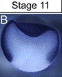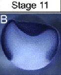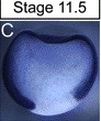 fus (fused in sarcoma) gene expression in bisected Xenopus laevis embryo, mid-sagittal section, assayed via in situ hybridization, NF stage 11, dorsal right, anterior up.