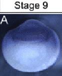 fus (fused in sarcoma) gene expression in bisected Xenopus laevis embryo, mid-sagittal section, assayed via in situ hybridization, NF stage 9, dorsal right, anterior up.