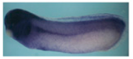 histone cell cycle regulator (hira) gene expression in Xenopus laevis embryo, assayed via in situ hybridization, NF stage 28, lateral view, anterior left, dorsal up.
