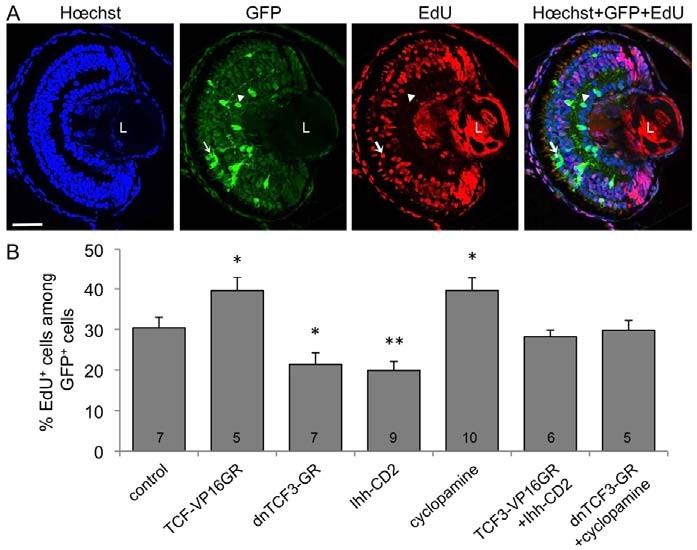 GFP+ EdUcell, respectively. (B)Percentage of EdU+ nuclei among