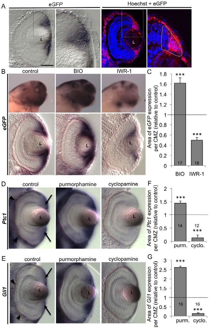 (dorsal side up). (C)Quantification of eGFP staining area per CMZ.