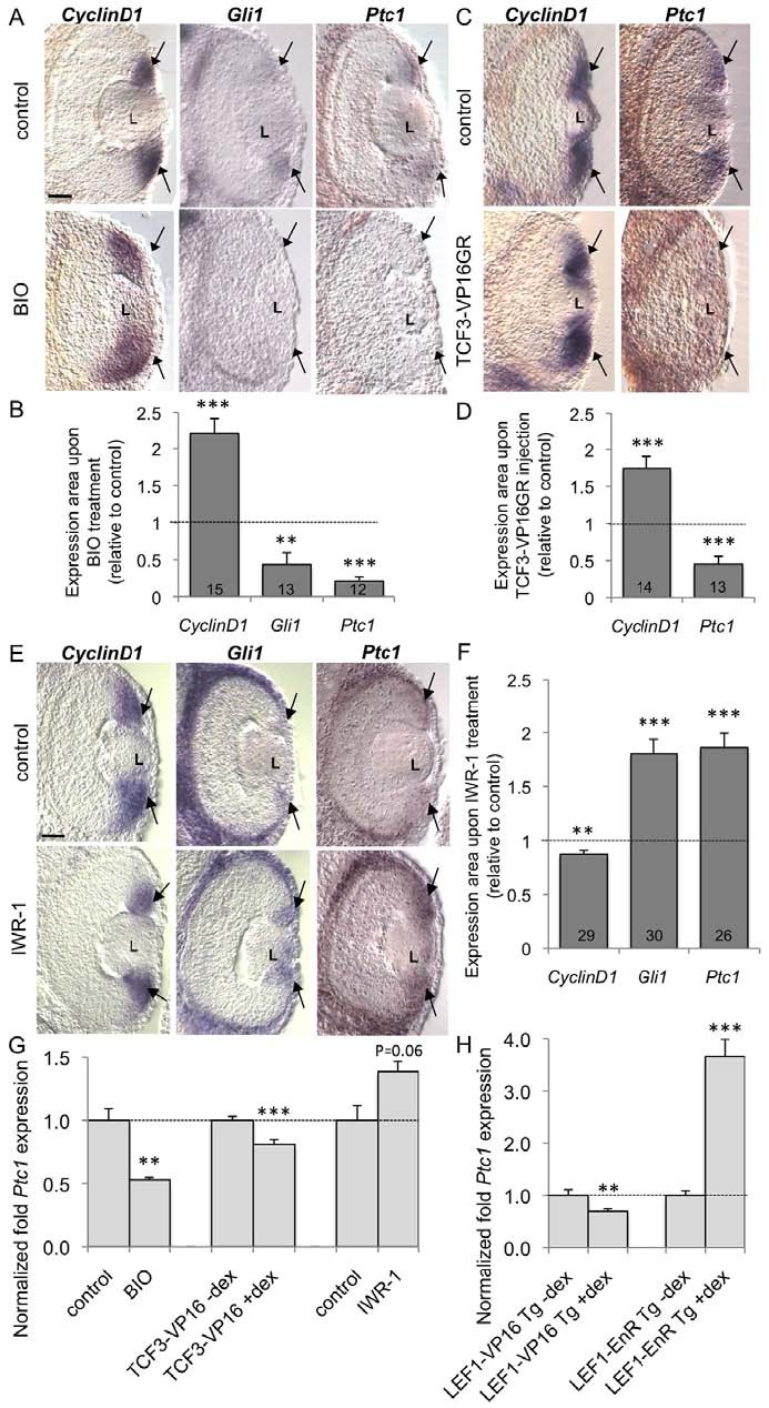 (G,H)qPCR analysis of retinal Ptc1 expression following Wnt signalling