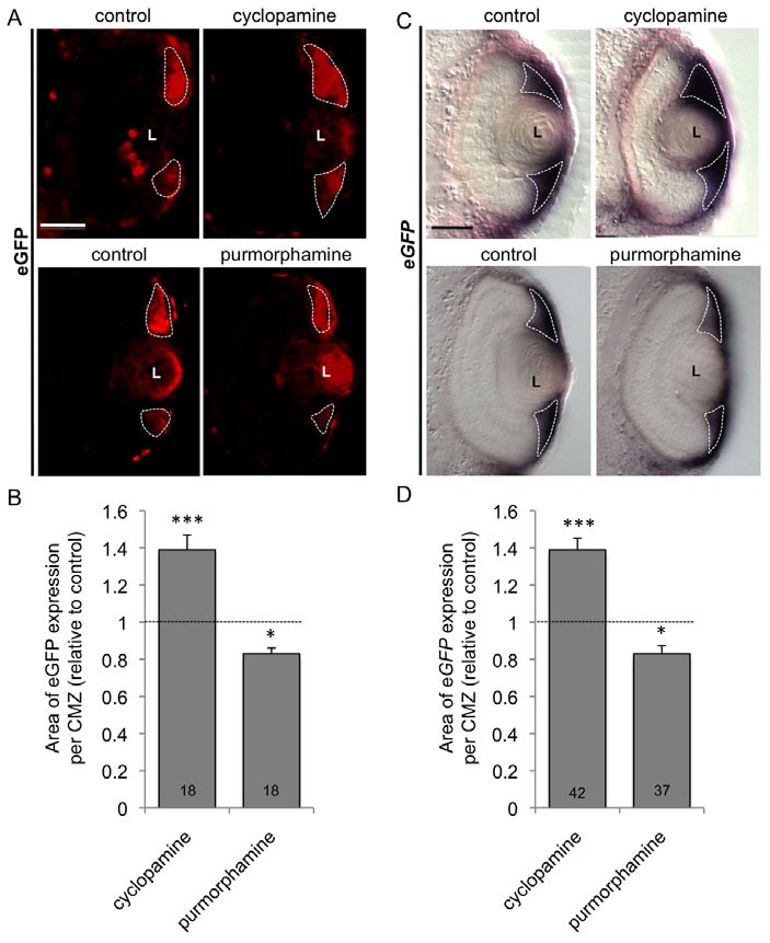 purmorphamine. (B,D)Quantification of eGFP staining area within the