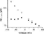 Figure 6. C10-TEA binds within the permeation pathway: the effect of external Mg2+ on intracellular C10-TEA blockade. Voltage dependence of intracellular C10-TEA blockade assessed in two different patches, either in the absence (open circles) or in the presence of 50 μM (filled squares) external Mg2+.