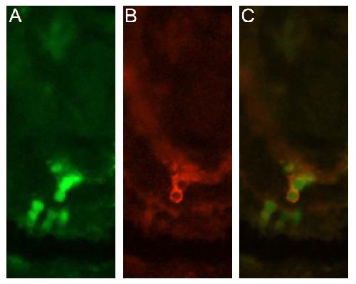 (A-C) Xenopus prune was over expressed with GFP (green) and then, the retina was stained with A59 (red). GFP positive cells are A59 positive. This indicates that A59 antibody recognise Xenopus prune protein too.