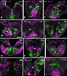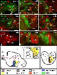 Figure 11. Photomicrographs of transverse (a,eâk) and sagittal (bâd) sections through the SC territory in late prometamorphic and juvenile Xenopus showing the single expressions of Nkx2.1 (b), Isl1 (b), xLhx1 (g), and xLhx7 (h) and the combined expressions of Isl1 and Nkx2.1 (a,dâf), Isl1 and Otp (i), Isl1 and GABA (j) and Isl1 and TH (k). Developmental stages are indicated in each photograph. The arrowhead in k indicates a cell double-labeled for Isl1 and TH. A magenta-green version of this figure is provided as Supporting Information Figure 8. Scale bars = 100 μm.