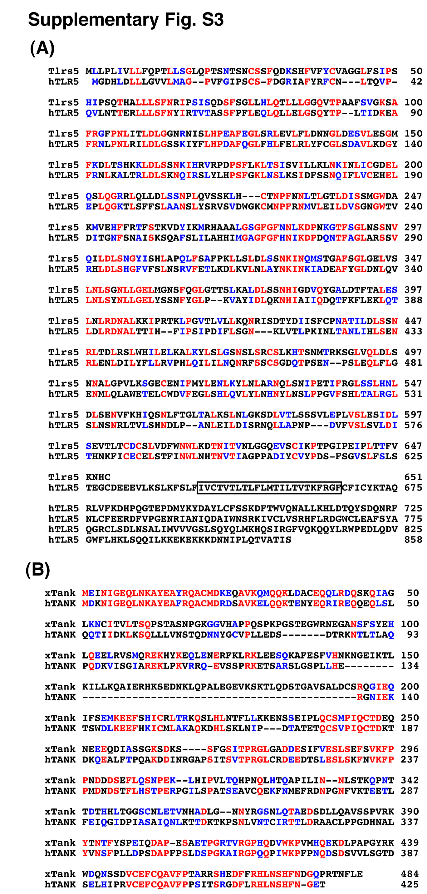 Figure S3 Comparison of Xenopus Tlrs5 and Tank with their human homologs.