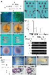 Figure 1. Mesodermal tissues were induced by mNanog mRNA injection.A) Detection of exogenous mNanog protein in Xenopus embryo by Western blotting with antibodies to mNanog (upper) and alpha-tubulin (lower). Non-injected embryo control (lane 1). mNanog-injected embryo (lane 2). BâC) Subcellular localization of mNanog protein in stage-10 embryo injected with mNanog mRNA. Ectoderm from normal embryo (B) or mNanog-injected embryo (C). Dissected tissues were fixed at stage 9, and then treated with anti-mNanog antibody. The green signal indicates mNanog protein. DAPI staining was also done (blue). Scale bar; 0.02 mm. D-G) Superficial phenotype of mNanog-injected embryos. Stage-18 (D, E) and stage-38 embryos (F, G) were observed. (D, F) Uninjected embryo. (E, G) 200 pg of mNanog mRNA was microinjected into the animal pole region at the 4-cell stage. Scale bar; 0.5 mm (D) and 1 mm (F). H, I) TUNEL staining of normal (H) or mNanog-injected (200 pg: I) embryos was performed at stage 20. Apoptotic cells appear as blue dots. J) The number of apoptosis-positive cells in normal embryo (nâ=â14) and 200 pg of mNanog injected embryo (nâ=â18) was described in bar graph. Error bar indicates S.E. KâN) Comparison of AC shapes between mNanog-injected embryos with and without Activin A treatment. All ACs were dissected at stage 9 and observed at stage 18. Normal ACs (K). ACs injected with mNanog into the animal pole region (L). ACs treated with 10 ng/ml Activin A at stage 9 (M). mNanog-injected ACs treated with Activin A at stage 9 (N). Scale bar; 0.5 mm. O) Analysis of AC elongation in (K)â(N). Both the shortest and longest lengths of AC were measured, and averages of the length ratio (long/short) were expressed as bar graphs. Normal AC (nâ=â50), 10 ng/ml Activin A-treated AC (nâ=â58), AC with 200 pg of mNanog injected (nâ=â46), AC with 200 pg of mNanog injected and 10 ng/ml Activin A treatment (nâ=â47), 400 pg of mNanog injected AC (nâ=â52), 400 pg of mNanog injected and 10 ng/ml Activin A treatment (nâ=â42). Error bar indicates S.E. P) RT-PCR analysis with RNA derived from stage-18 AC. Normal AC (lane 2), AC with 10 ng/ml of Activin A treatment (lane 3), AC injected with 200 pg of mNanog (lane 4), or AC injected with 200 pg of mNanog and treated with Activin A (lane 5) were used. WE: whole embryo. QâS) Secondary axis formation with mNanog injection. 400 pg of mNanog mRNA was injected into the ventral marginal zone (VMZ) at the 4-cell stage. Phenotypes were observed at stage 40. Secondary axis without head structure was observed in mNanog-injected embryo (15/30, two independent experiments). Arrow indicates a secondary axis. Scale bar; 1 mm. T, U) HE-stained histological sections of stage-40 embryo. Uninjected embryo (T). An embryo injected with 200 pg of mNanog mRNA into the VMZ (U). Arrowhead indicates notochord-like structure. Scale bar: 0.2 mm.