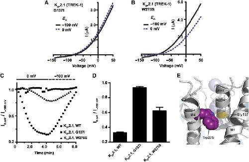 Molecular mechanisms underlying membrane-potential-mediated regulation of neuronal K2P2.1 channels.