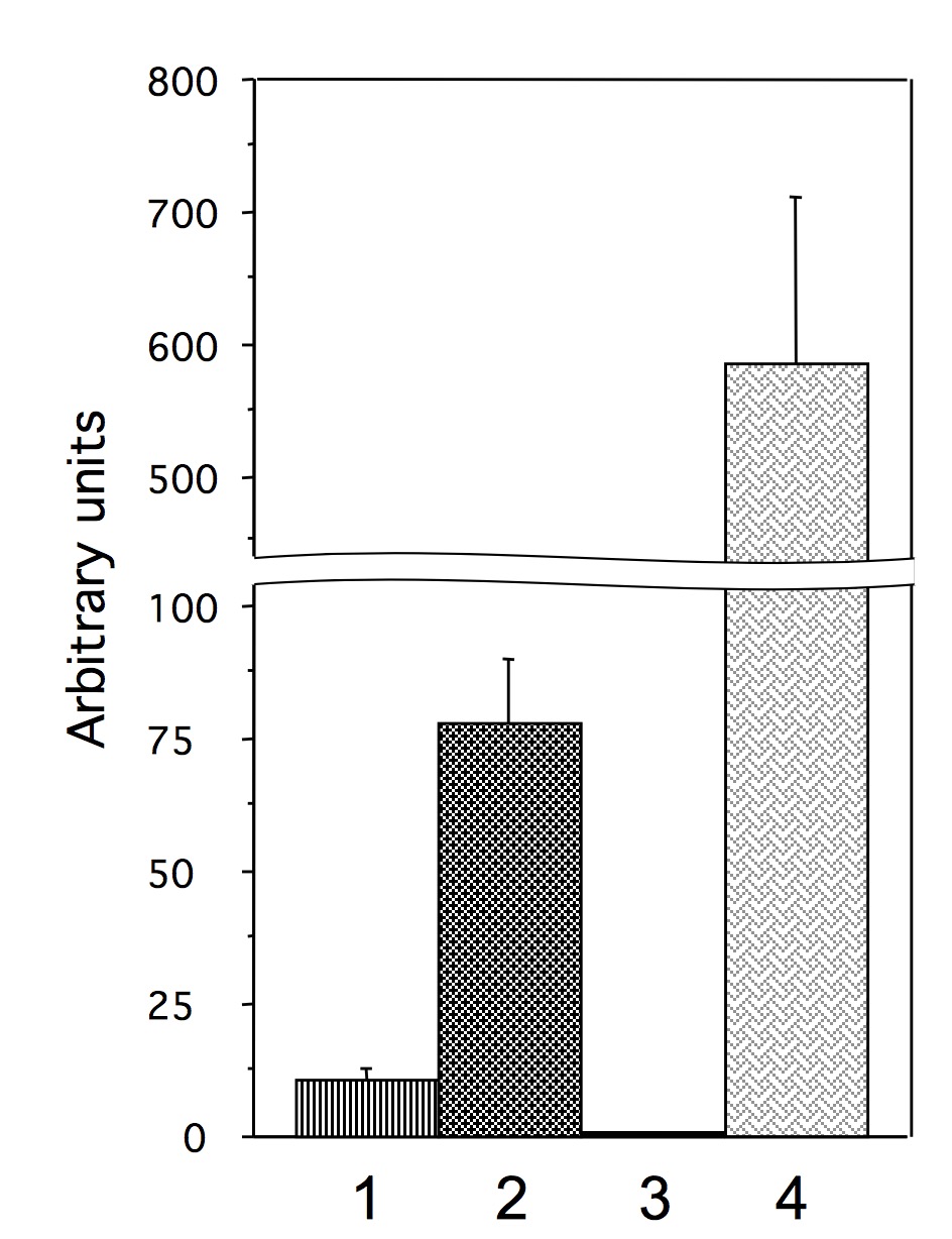 Figure S1. Figure S1: Comparison of TR mRNA levels in the intestine of metamorphosing tadpoles and the ooyctes with or without F-TR mRNA injection. The intestines were dissected from tadpoles at premetamorphic stage 54 (lane 1) and during metamorphosis (stage 60, the climax of metamorphosis, lane 2), respectively, and subjected to RNA isolation. Oocytes without (lane 3) or with (lane 4) F-TR mRNA injection were collected 2 hours after mRNA microinjection and groups of 8 oocytes each were used for RNA isolation. The RNA was extracted with TRIzol reagent (Invitrogen), made DNA-free with RNA-free DNase I treatment, and re-extracted with TRIzol reagent. 0.5 μg (oocyte RNA) or 2.5 μg (intestinal RNA) of each RNA sample was used for reverse-transcription in 50 μl with a High Capacity Reverse Transcription Kit (Applied Biosystems), and 4 μl of the product were subjected real- time PCR analysis for TR transcripts. The value for the endogenous TR mRNA in oocytes (lane 3) was set to 1.
