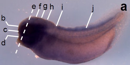 gastrula, (d) ventral view of an early tailbud embryo at stage 20, (d lateral view of panel d, (e) lateral view of an early tailbud embryo at stage 24, (e