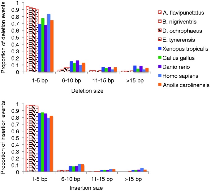 have higher relative numbers of the smallest (i.e., 1–5 bp) insertions and