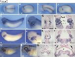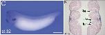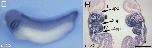 gcm2 (glial cells missing homolog 2) gene expression in Xenopus laevis embryo, assayed via in situ hybridization, NF stage 32 ,dorsal view, anterior left, dorsal up, and longitudinal section, anterior top.