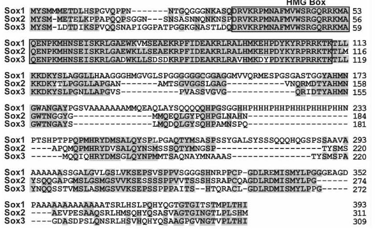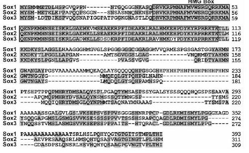 Figure1. Alignment of Xenopus laevis Sox1, Sox2, and Sox3
