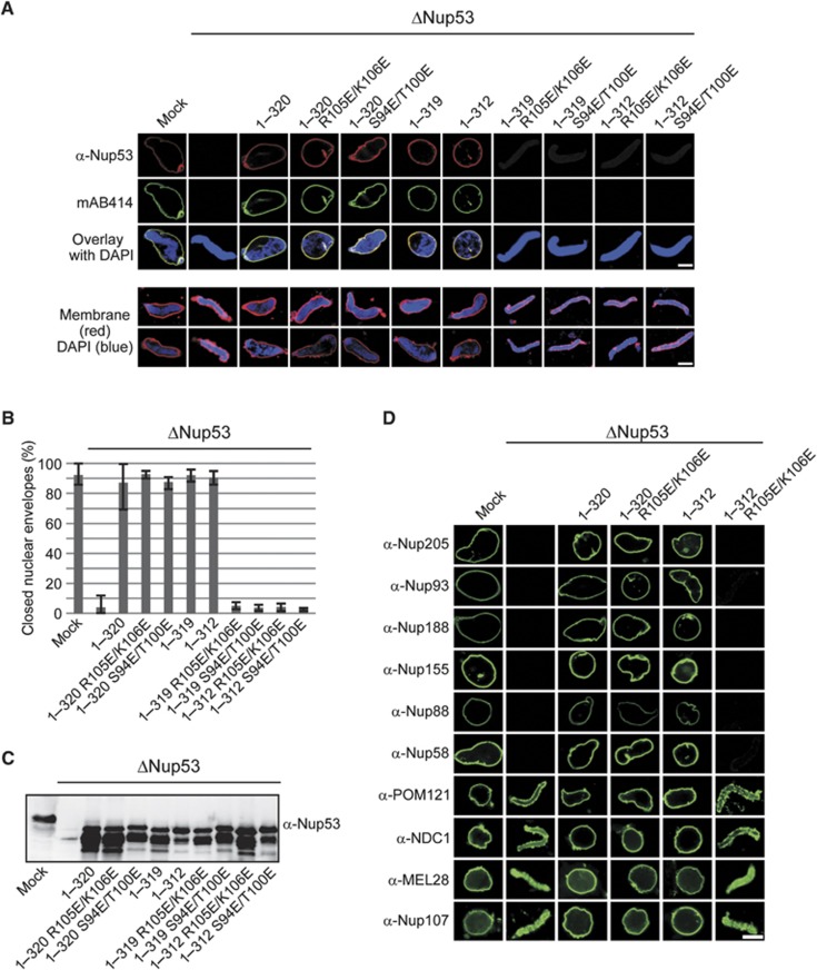Hawryluk-Gara, Nup53 is required for nuclear envelope and nuclear pore complex assembly. 2008, Pubmed , Xenbase