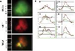 Fig. 5 Rab11 and ductin have a close intracellular localization. Embryoswere injected at the 1-cell stage with Rab11-Tom and Ductin-YFP. At stage 45, cells fromthe tail expressing both constructswere viewed at 100magnification. Whenever possible, single cells or a small cluster of cells with tomato and YFP signal were examined. (A) DuctinFP (shown in green), Rab11 Tom (shown in red) and a merged image (with overlapping regions indicated in yellow) were examined. Z stacks were analyzed for intensity with the plot profile feature in ImageJ along the six lines indicated (representative of different regions within the cells). (B) Quantitative plots of Rab11om (red) and DuctinFP (green) expression corresponding to each region of the cells (indicated by lines in panel A). Regions of high intensities of DuctinFP and Rab11om expression were found to overlap. Furthermore, strong Rab11-Tom expression was often found surrounding strong ductin expression, as indicated by the arrows in plot 2. |