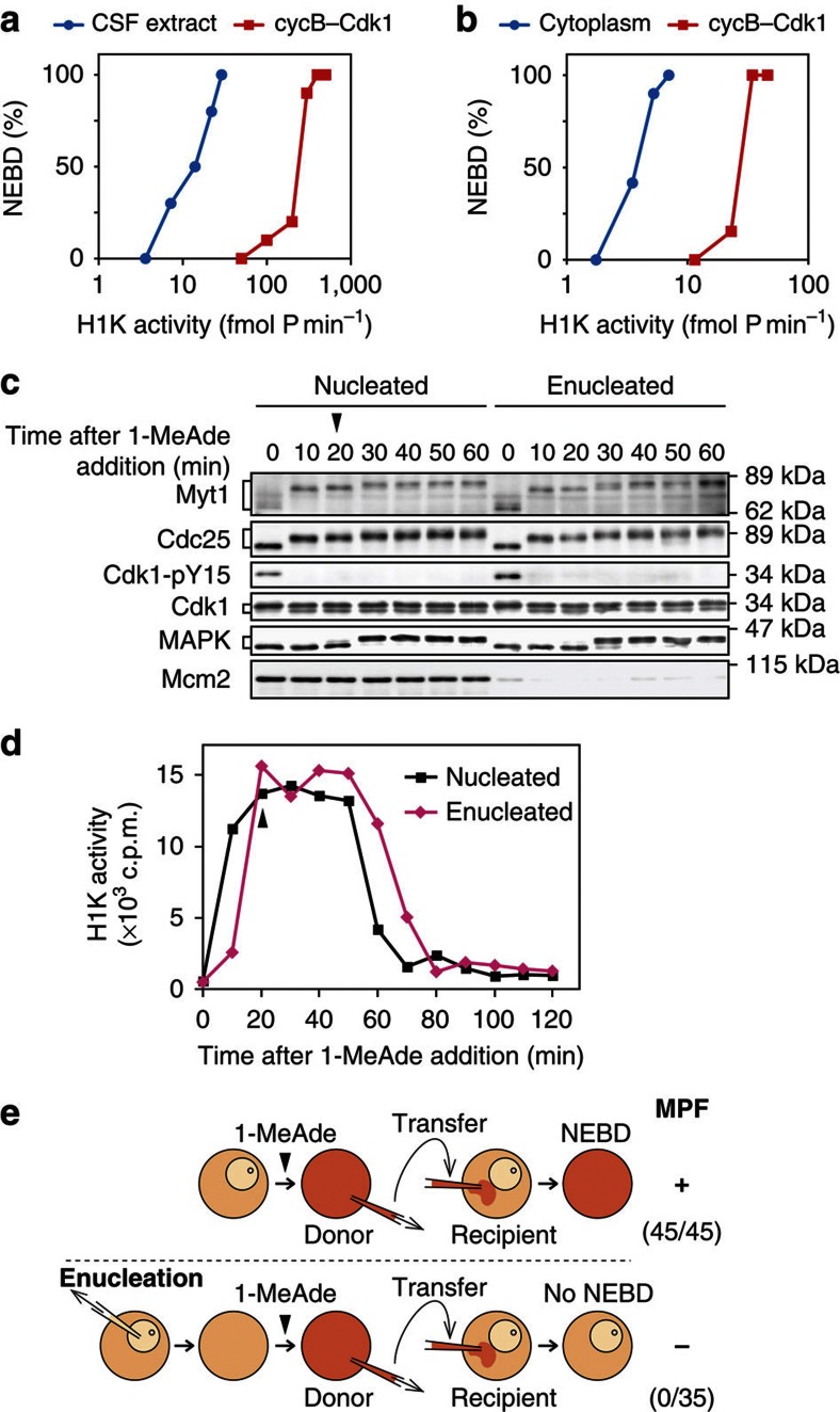 Picard, The role of the germinal vesicle in producing maturation-promoting factor (MPF) as revealed by the removal and transplantation of nuclear material in starfish oocytes. 1984, Pubmed