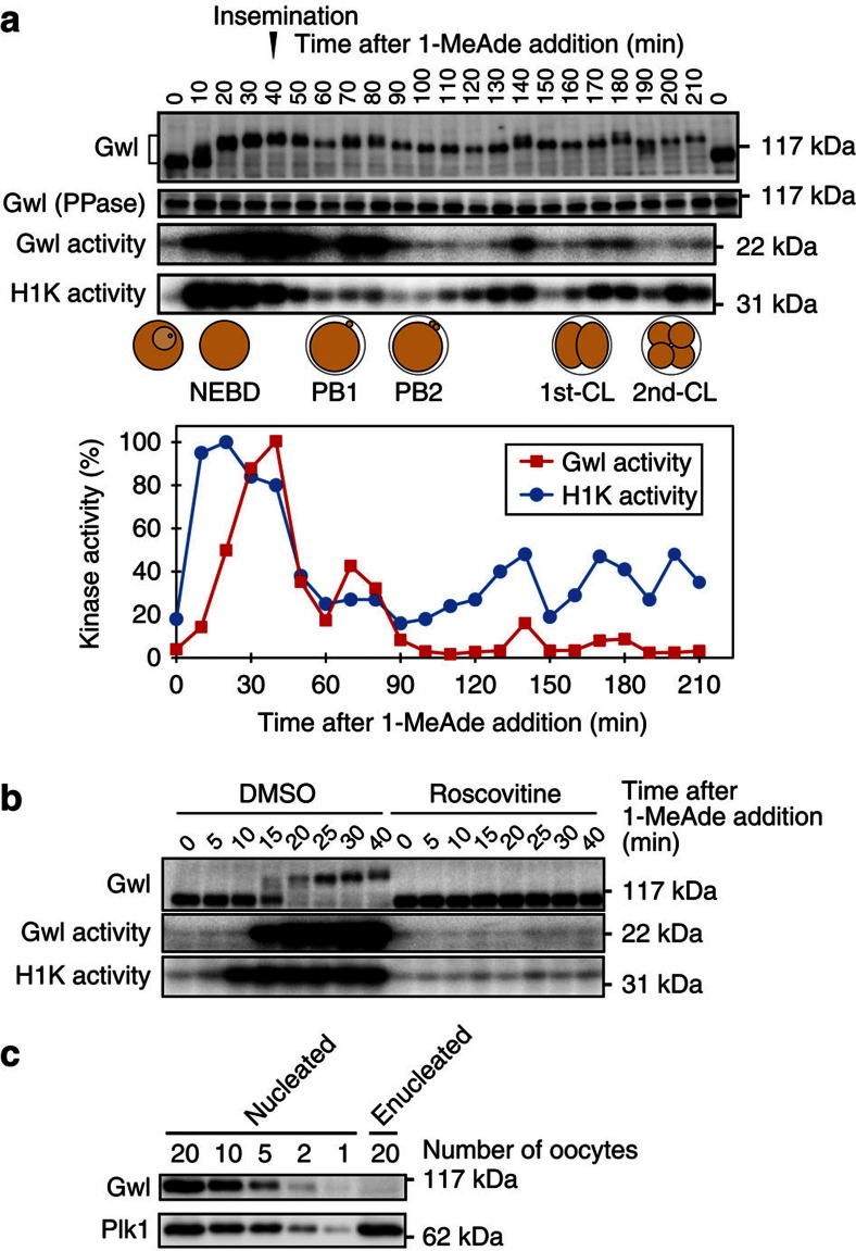 Okumura, Initial triggering of M-phase in starfish oocytes: a possible novel component of maturation-promoting factor besides cdc2 kinase. 1996, Pubmed