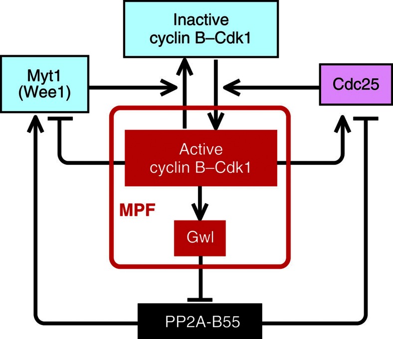 Greatwall kinase and cyclin B-Cdk1 are both critical constituents of M-phase-promoting factor.