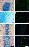 Fig. 12. Immunofluorescent localization of rat UTR in the costal cartilage and xiphoid process. AâD A sagittal section of the costal cartilage stained with alcian blue (A, C). Immunolabeling for rat UTR (green) was detected in the hyaline chondrocytes (B, D). EâH A cross section of the xiphoid process stained with alcian blue (E, G). The chondrocytes immunostained for rat UTR (green) were dispersed throughout the cartilage matrix (F, H). Scale bars, 200 μm (A, B) and 50 μm (CâH). (For interpretation of the references to color in this figure legend, the reader is referred to the web version of this article.)