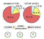 Fig. S2. Overexpression of the DEADSouth gene does not affect translocation of germ plasm. Ratio of PGCs with three localization patterns of germ plasm from stage 12 embryos uninjected and injected with DS-full. According to the localization patterns, 118 (uninjected) and 97 (DS-full) PGCs were classified into three groups; cortex, perinucleus and intermediate (cortexperinucleus) shown at the bottom of the figure.