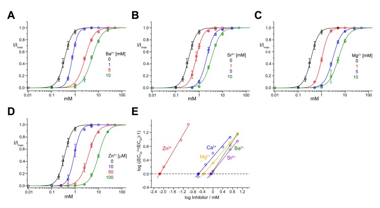 Inhibition of the prokaryotic pentameric ligand-gated ion channel ELIC by divalent cations.