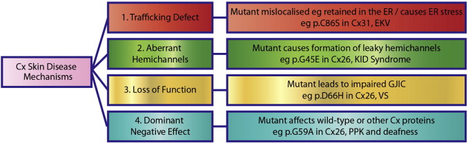 The expression of multiple connexin (Cx) types in the epidermis, their differential expression during wound closure and the association of skin pathology with specific Cx gene mutations, are indicative of important functions for Cxs in the skin. In this review, we focus on the role of Cx proteins in the epidermis and during wound healing and discuss mutations in Cx genes which cause skin disease. This article is part of a Special Issue entitled: The Communicating junctions, composition, structure and characteristics.