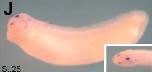 animal to the top. (F) Anterior view with dorsal to the top. (G and H) Lateral view with anterior to the left. Inset in (J) shows the dorsal view of head region. A dotted circle in