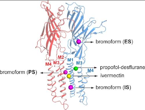 FIGURE 4. Molecular recognition of bromoform at an intersubunit transmembrane site.
