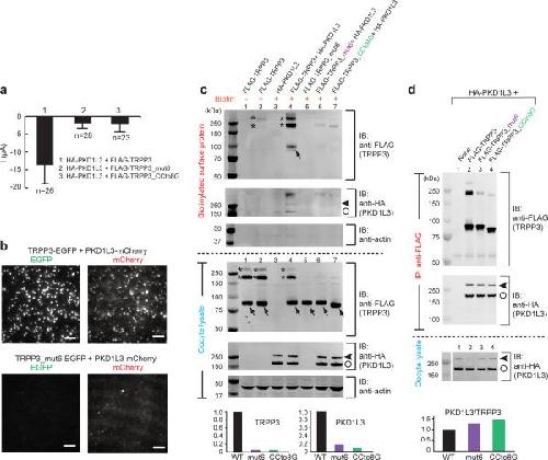 Ishimaru, Interaction between PKD1L3 and PKD2L1 through their transmembrane domains is required for localization of PKD2L1 at taste pores in taste cells of circumvallate and foliate papillae. 2010, Pubmed