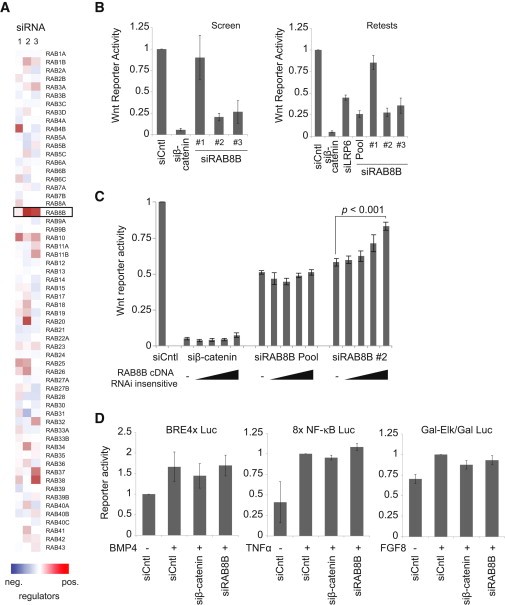 Figure 1. An RNAi Screen Identified RAB8B as a Positive Regulator of Wnt/β-catenin Pathway