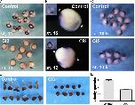 Fig. 2. Inhibition of Calpains by CI3 causes severe delays in blastopore and neural tube closures. (A) Vegetal view of a stage 12 control embryo (left) and an embryo treated with 100 �M CI3 from pre-gastrula stages (right). CI3-treatment severely delays blastopore closure. (B) Dorsal view of stage 18 control embryos (left) and embryos treated with 100 �M CI3 from stage 11 (right). The addition of the inhibitor at this stage causes a significant delay in neural tube closure. (C) Tailbuds of embryos treated with CI3 at different times of development and rescued by removal of the inhibitor. Embryos in which the inhibitor was added at pre-gastrula stages and kept for the whole course of development display a severe phenotype, with shorter and bent AP axes and loss of anterior structure (second image from the left). Embryos in which the inhibitor was removed at stage 12 and replaced with fresh 0.1� MMR display a range of overall less severe phenotype, with normal heads but shorter and bent AP axes and some spina bifida phenotypes (third image from the left). Embryos treated with CI3 from stage 11 onwards appear shorter, with reduced eyes and overall pigmentation (image to the right). (D�F) Scoring of the phenotypes of embryos treated with the inhibitor from gastrula stages onwards (n=73), inhibitor removed at stage 10.5 (n=44), inhibitor removed at stage 12 (n=55) and treated from stage 11 (n=46). Graphs indicate the per cent of embryos that display the phenotypes as depicted in the images above each graph. Percentages are calculated on surviving embryos only. (D) Delays in blastopore closure are assessed in embryos at stage 12. Controls: blastopore=0.2�0.25 mm, Mild phenotype: blastopore=0.35�0.5 mm. Severe phenotype: blastopore=0.5�0.8 mm. (E) Delays in neural tube closure are scored in embryos at stage 18. (F) The range of phenotypes observed at tailbud stages are classified in mild (normal head structure, shorter AP axis), severe (short and deformed embryos, completely lacking head structures) and spina bifida. (G) Death rates of embryos treated with CI3 from gastrula stages onwards, inhibitor removed at stage 10.5 and at stage 12.