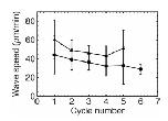 Supplementary Figure 2 | The propagation rate slows down progressively. Wave speeds are shown for mitotic entry (circles) and exit (triangles) as means ± S.D. Data are from one experiment (the experiment shown in Fig. 2B).
