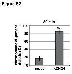 Figure S2. Quantitation of chromosome alignment defects in sperm spindle assembly, shown in Figure 2B After 80 min, the percentage of structures that show misaligned chromosomes was quantified over the total number of chromatin structures counted (n > 50 structures per experiment). Error bars, SD from three independent experiments. ****: P < 0.0001.