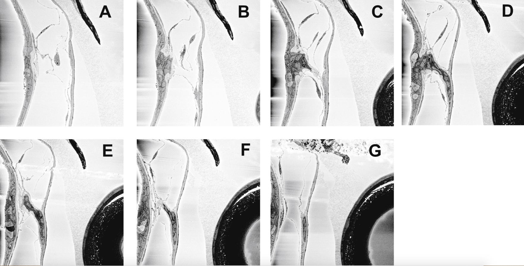 Fig. 8. Stroma attracting center in stage 48â50 cornea. (AâG) Selected EM images used in the 3D reconstruction of the SAC.