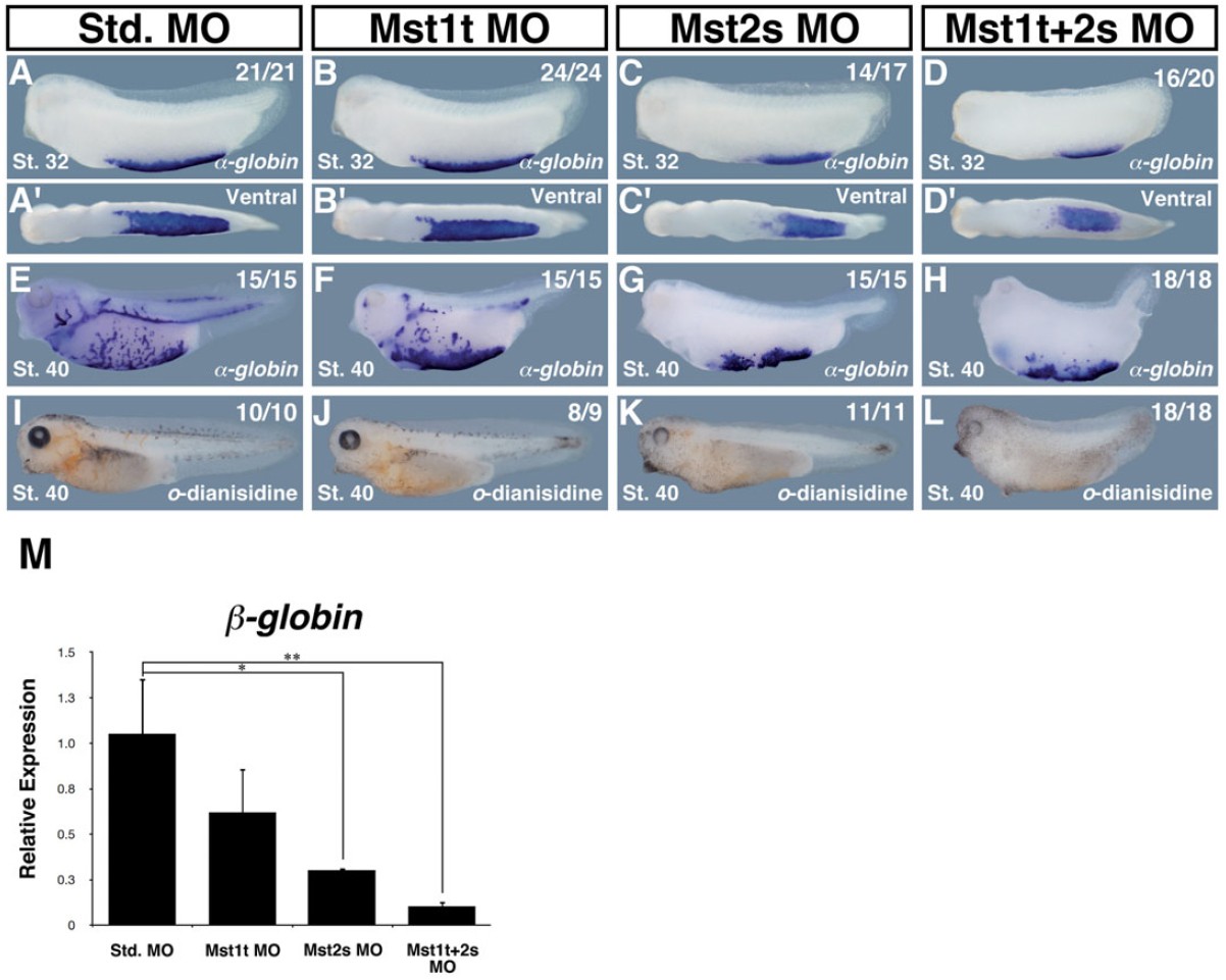 Fig. 3. Effects of Mst1/2 MO injection on embryonic erythrocyte
