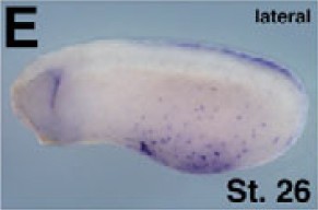 stk4 (serine/threonine kinase 4) gene expression in Xenopus tropicalis embryo, assayed via in situ hybridization, NF stage 26, lateral view, anterior left, dorsal up.
