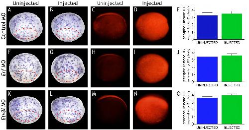 significant difference in phospho-Histone H3 staining on the injected versus the uninjected side (Ctrl MO, n=21, P=0.4654; Erf MO,
