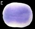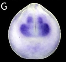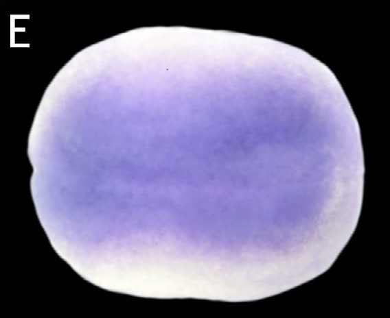 erf (Ets2 repressor factor) gene expression in Xenopus laevis embryo, assayed via in situ hybridization, NF stage 12, dorsal view, anterior left.