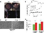 Figure 5. Corneal oedema and progressive corneal dysfunction in slc4A-a11−/− mice. (A) Slit lamp examination of WT and slc4a11−/− mice. Corneas of 48-week WT and slc4a11−/− mice seen under retro-illumination (top panels) and examined using tangential slit illumination (bottom panels). Arrows indicate corneal haze observed in slc4a11−/− mice. (B) Corneal thickness measured by in vivo confocal microscopy (n = 5 per genotype). Central corneal thickness was significantly different between WT and slc4a11−/− mice at all time points (P < 0.01). The corneal thickness in heterozygous (slc4a11+/−) mice was not different compared with wild-type mice. (C) Scanning electron micrographs of corneal endothelia from WT and slc4a11−/−mice at 32 weeks. Scale bars are 20 µm. (D) Statistical analysis of corneal endothelial cell density.