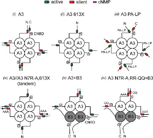 Zhong, The heteromeric cyclic nucleotide-gated channel adopts a 3A:1B stoichiometry. 2002, Pubmed