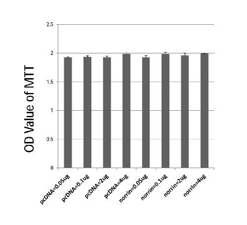 the norrin plasmid or empty vector. At 48h later, cell viability was monitored by the MTT assay.