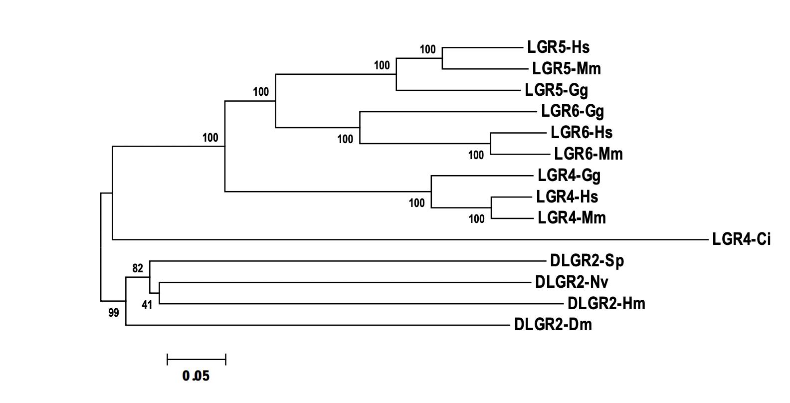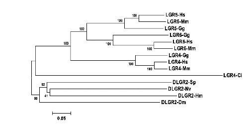 Fig. S12. Phylogenetic analyses of LGR-B receptors in diverse species. LGR-B receptors were categorized by the ClustalW