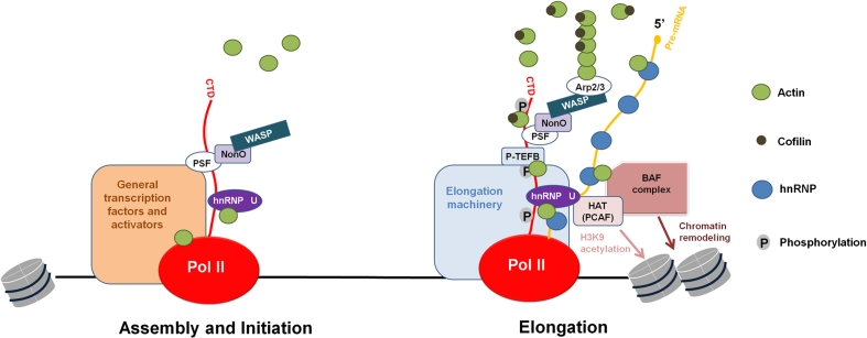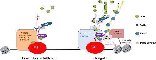 Qi, G-actin participates in RNA polymerase II-dependent transcription elongation by recruiting positive transcription elongation factor b (P-TEFb). 2011, Pubmed
