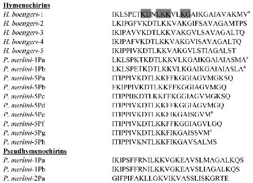 Figure 5. Primary structures of the hymenochirins isolated from skin secretions of the frogs Hymenochirus